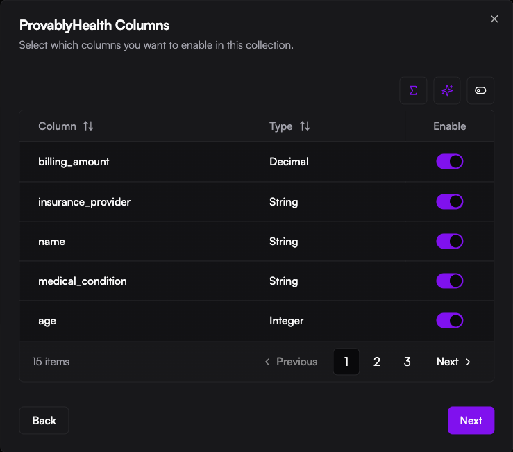- Privacy by Design: Only the columns you enable here will be accessible for queries and proofs.
