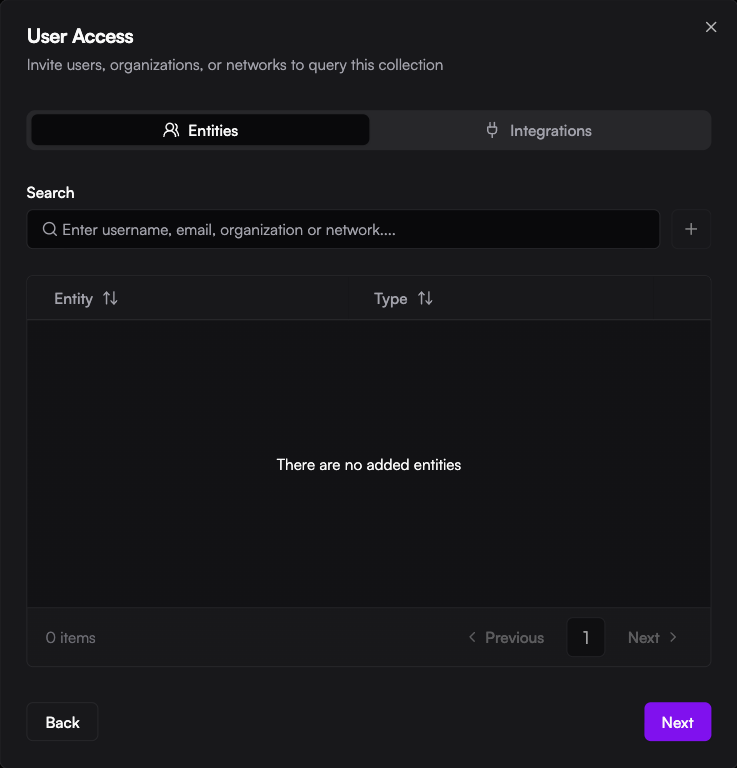 - Grant Access: You can search for specific users or organizations to give them collection access.